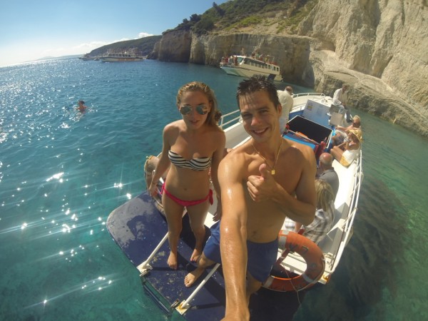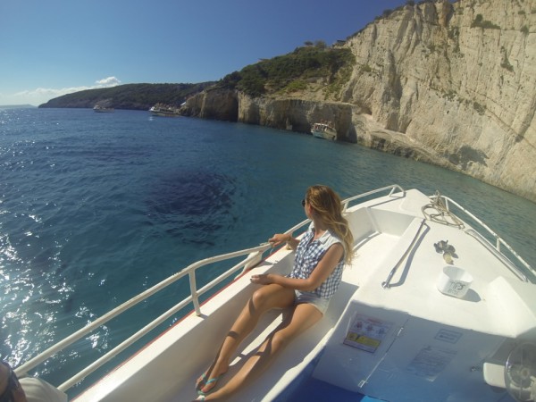 Zakynthos a najkrajšia a najpopulárnejšia pláž v Grécku! Výhľad z hora a ďalší deň výlet rovno tam. Dostať sa tam dá len loďou, keďže je to medzi vysokými útesmi. Milujem miesta, ktoré vyzerajú minimálne rovnako krásne, ako na obrázku. Toto je jedno z nich <3 Na tento ostrov sme došli najmä kvôli tomuto miestu. Došli sme poobede, išli hneď na výhliadku a odtiaľ na miesto, odkiaľ chodia loďky s výletom na túto pláž. V prístave sme si dali večeru a aby sme ušetrili, jednu noc sme prespali v aute.Ráno natešení sme si šli kúpiť lístky na výlet na jedno z mojich vysnívaných miest. Nanešťastie sa nám to mierne skomplikovalo, nakoľko sme nerátali s vetrom a tým pádom vysokými vlnami. Loďky kvôli tomu nemali vyplávať najbližšie 2-3 dni na moju vysnívanu Navagio Beach. Bola som sklamaná a odhodlaná hľadať iné riešenie. Veď som prišla "origoš" kvôli tomu. Bola som tak blízko! Asi po ďalších 5tich pokusoch u iných predajcov výletov loďami, ktoré boli márne, som si začala pripúšťať, že môj sen sa zrejme nenaplní. O 3 dni sme mali byť už na inom ostrove-Lefkada, kde sme už mali zabookované a zaplatené ubytovanie, takže pobyt na Zakynthose sme si predĺžiť nemohli. Po ďalších dvoch pokusoch sme zistili, že existuje ešte možnosť ísť do hlavného mesta, odkiaľ vyplávajú veľké lode, ktorým takéto vlny až tak nevadia. Tie ale robia výlety 8-hodinové a okolo celého ostrova. Bola som za každú možnosť, ktorá viedla na to zázračné miesto.Keďže bolo už okolo obeda a teda neskoro stihnúť loď z hlavného mesta, odložili sme to na ďalší a na tomto ostrove druhý deň. Druhú časť prvého dňa sme si užili ešte na blue caves, čo bolo kúsok od pobrežia, kde vlny až tak nevadili. Boli to očarujúce jaskyne s priezračnou vodou. Aj sme si zaskákali z loďky do vody :)